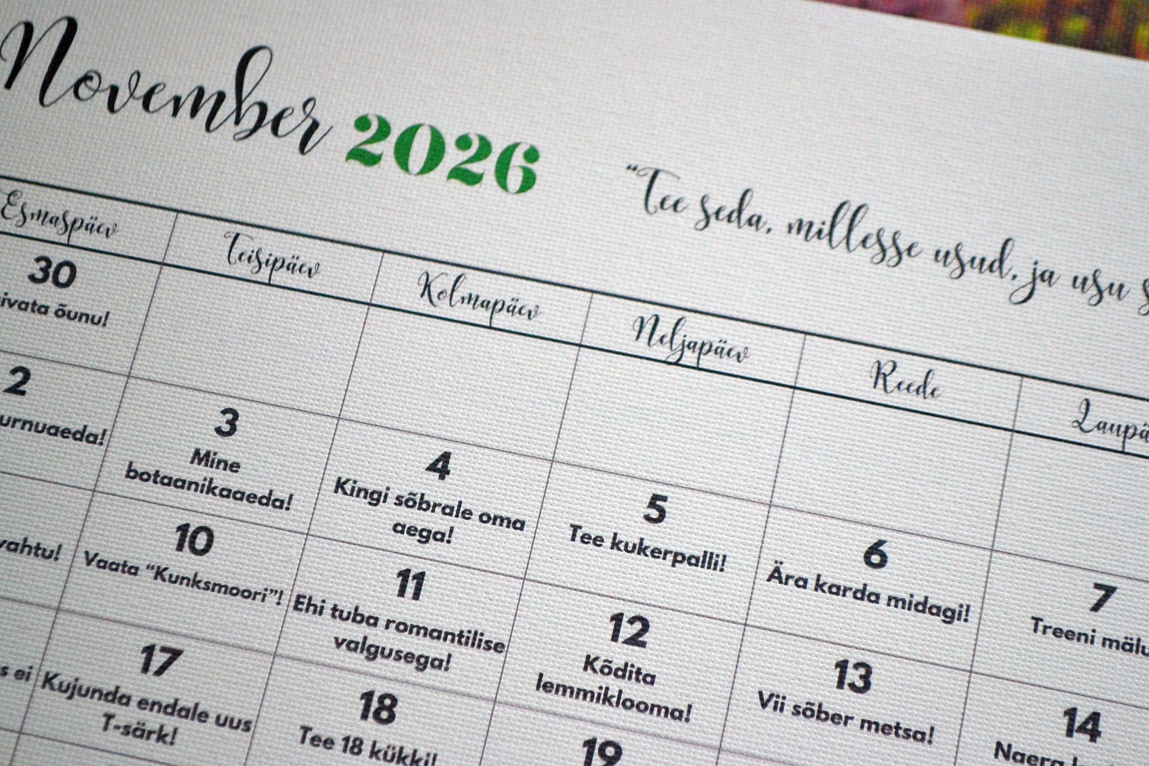 Kalender on valminud Musta Molberti töötoas (Nooruse 1, 2. korrus, Tabasalu)