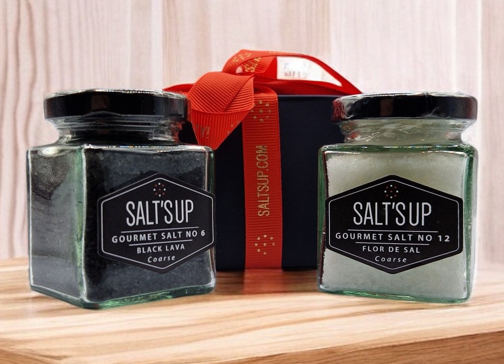 Kinkekomplekt musta ja valge soolaga on vahva kingitus soolaleivale minnes.