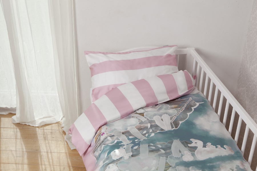 Sama disainer on Uneleja jaoks kujundanud ka laste voodipesu komplekti Luiged sinises.