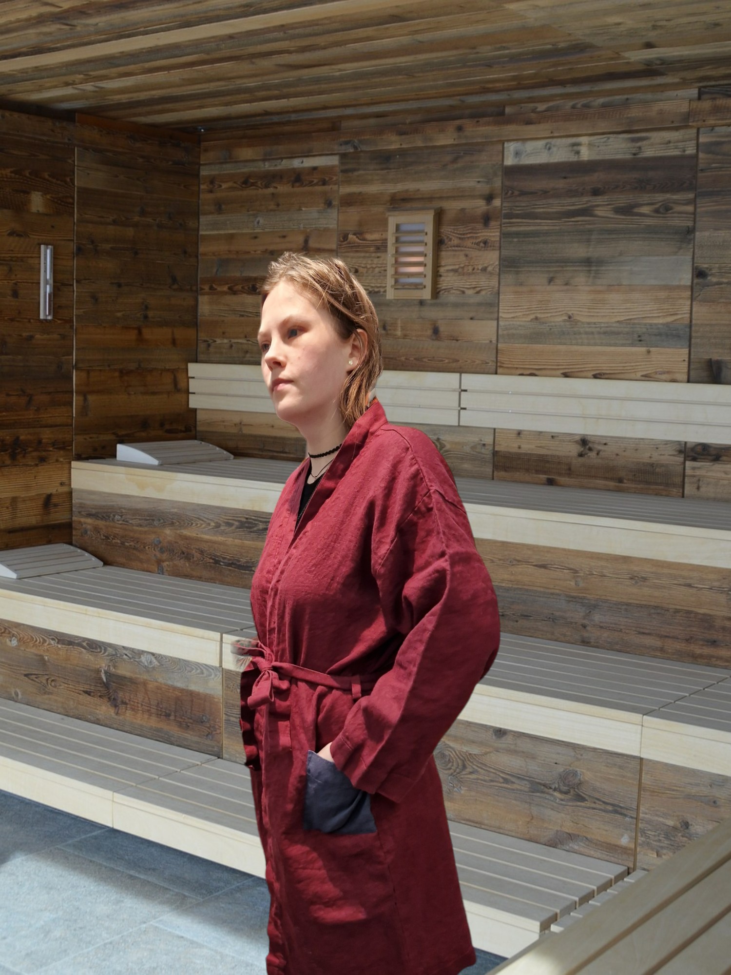 Linane hommikumantel on looduslikult hingavast materjalist.