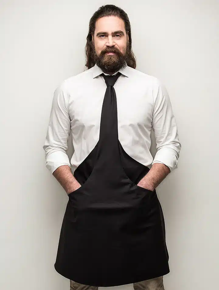 Chef põlledel on kaks suurt taskut, mis mahutavad toidu valmistamisel ja/või serveerimisel vajalikud abivahendid. Kuid loomulikult võib taskutesse ka lihtsalt käed torgata.