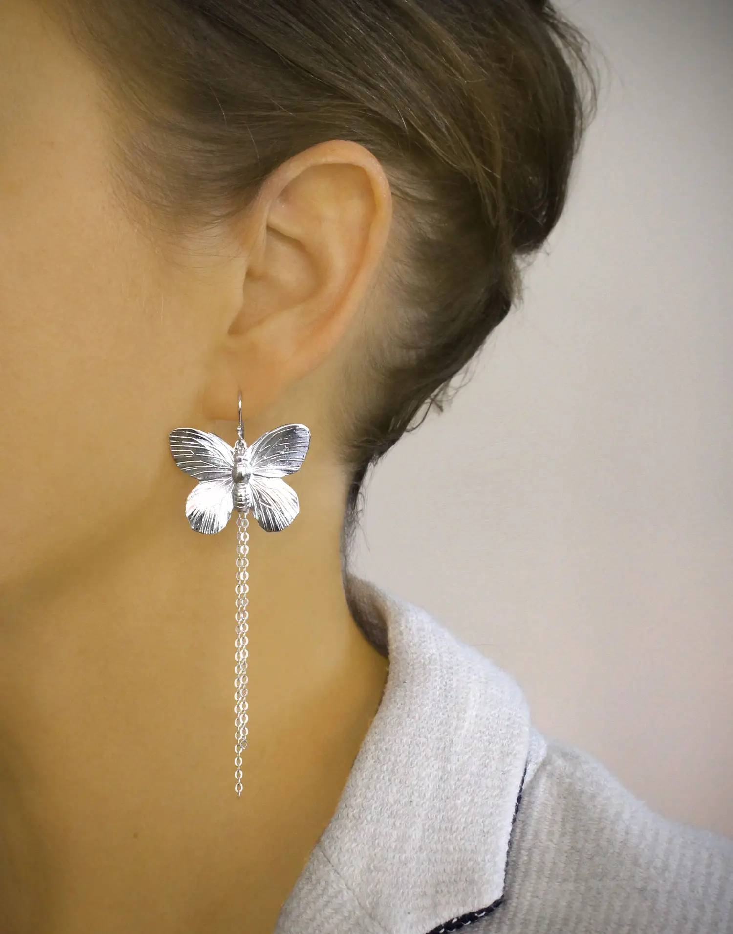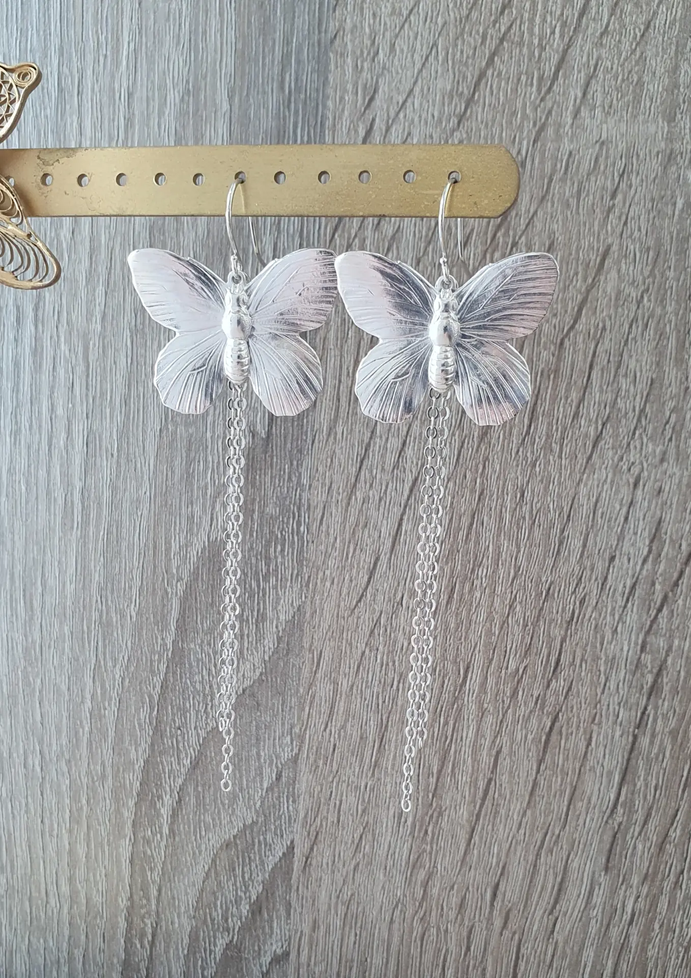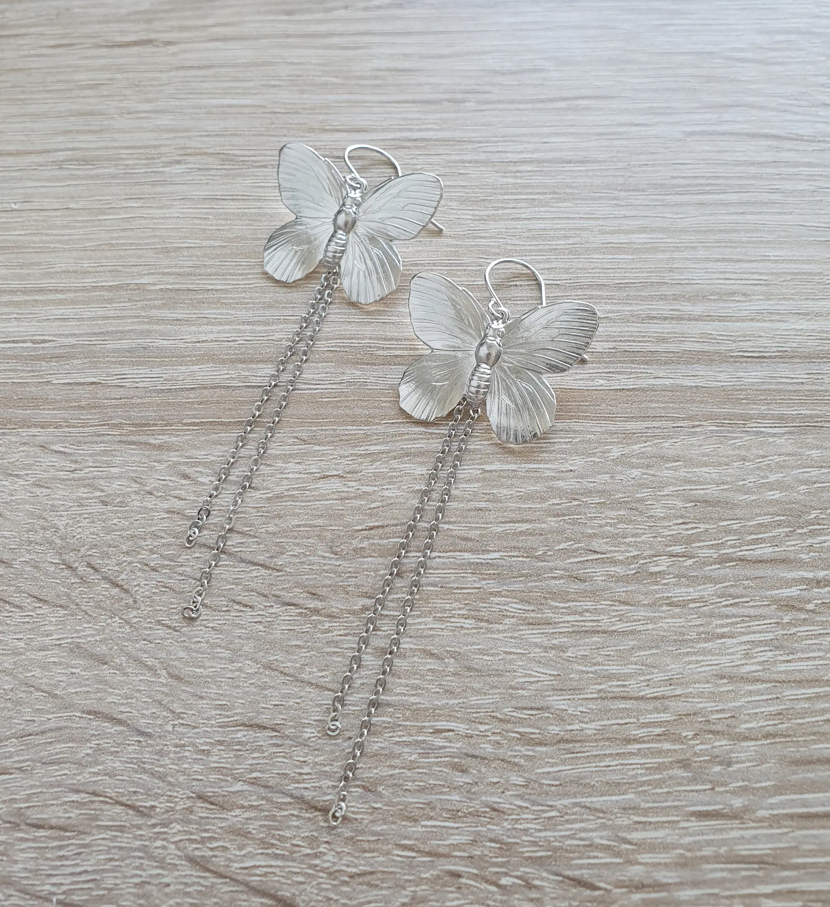 Need ultra-glamuursed kõrvarõngad on käsitsi valmistatud ning kaunistatud õrnade rippuvate ketielementidega, mis lisavad liikumisel kerget sädelust ja trendikat ilmet. Liblikamotiiv sümboliseerib muutust, ilu ja vabadust, muutes need kõrvarõngad tähendusrikkaks aksessuaariks ning ideaalseks kingituseks liblikate armastajale.