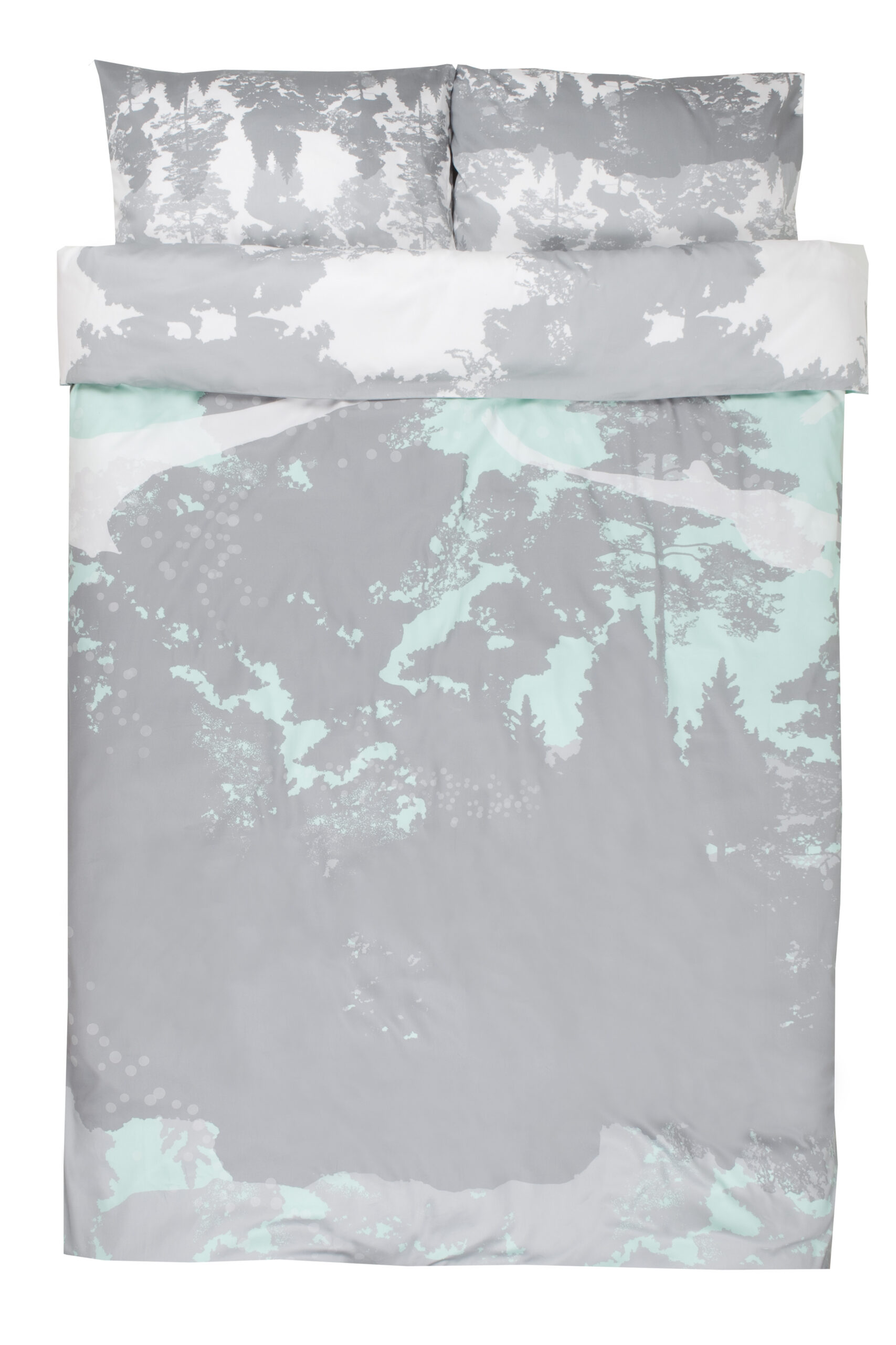 Tekikoti ühel poolel on suur pilt luikedest sinakal-hallil taustal. Tekikoti teisel poolel on põhjamaiselt hall metsamuster, sama mustriga on ka padjapüürid.