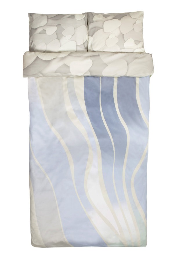 Tekikoti ühel poolel on suur abstraktne pilt lainetusest, teisel pool erinevates helehallides toonides kivikesed. Kahe padjapüüri mõlemal poolel on samuti kujutatud kivikesi, kahel ülejäänul on ühel pool kokkusobiv abstraktne muster.