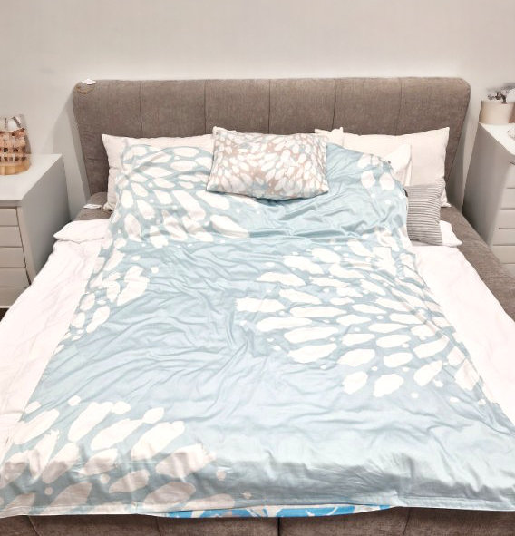 Sama kunstnik on Uneleja jaoks disaininud ka voodipesukomplekti Peegeldus.