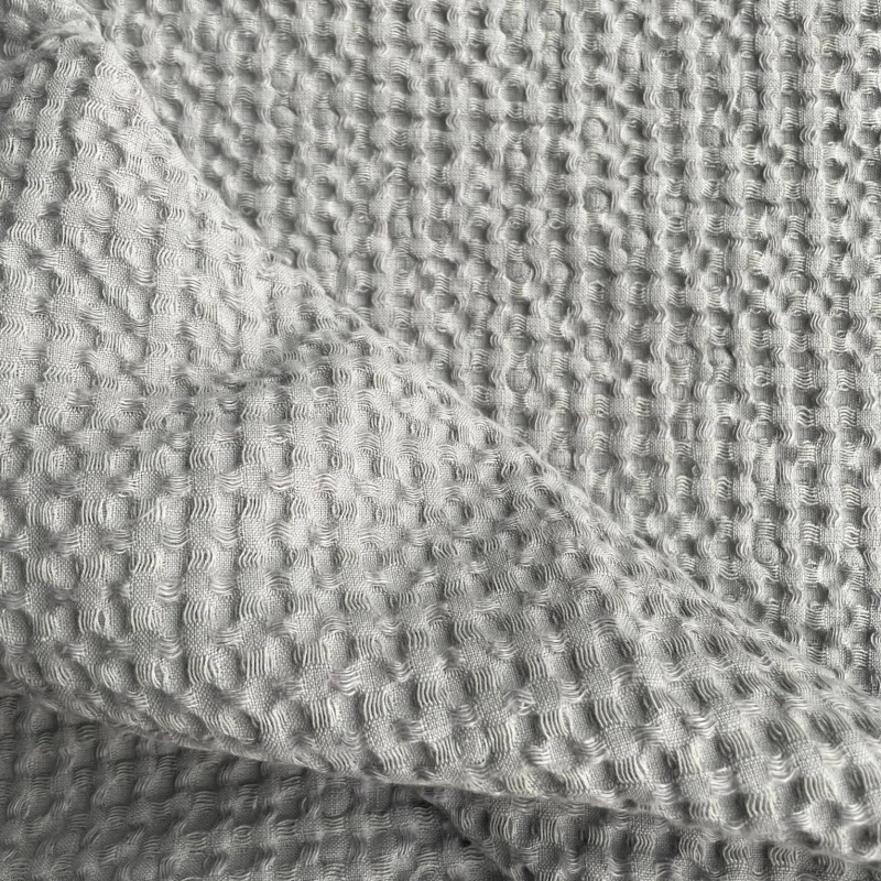 A large gray sauna towel made of soft waffle fabric. The material is linen and cotton, which are valuable, environmentally friendly and durable materials. Linen gives a beautiful shine and strength, cotton gives softness. Material is prewashed, so it will not shrink anymore, has excellent absorbability and dries fast.