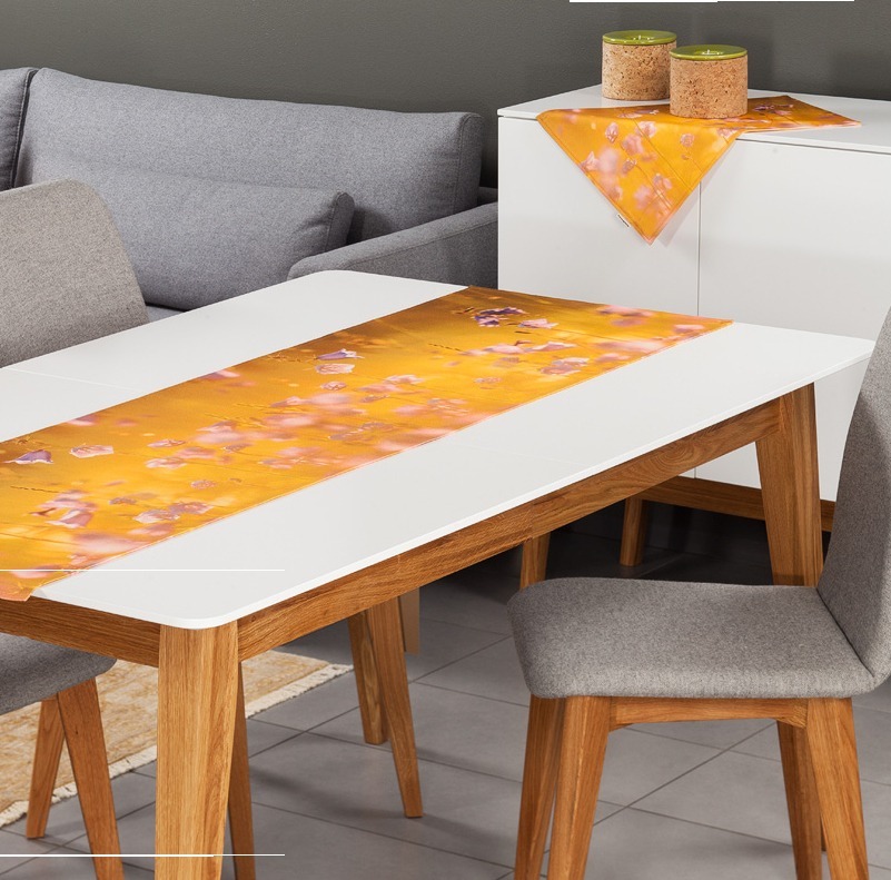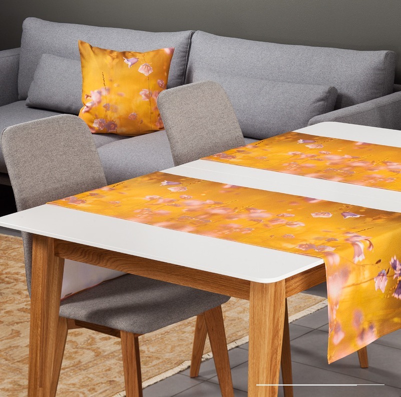 Table runner Bellflowers is made of 100% cotton fabric. The table runner can be placed in the middle of the table as a decoration or cover two opposite places with it. The product is easy to care for – it can be washed in water at a maximum of 60 degrees and ironed with the heat intended for cotton. The runner can withstand low temperature machine drying. The dimensions of the product are 44 cm x 136 cm.