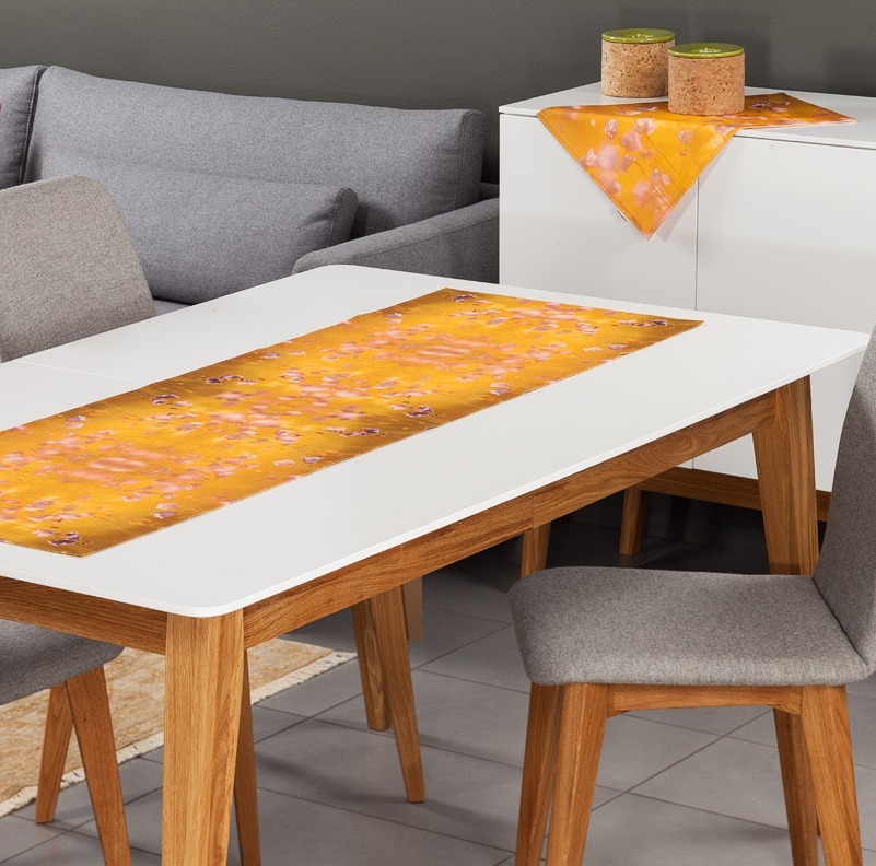 The Bellflowers 1 long table runner features a delicate bell-flower inspired design, reflecting nature’s harmony and Scandinavian-inspired minimalism. Its refined pattern and carefully balanced colors make it ideal for both modern and classic interiors. Whether placed on a dining table, sideboard, coffee table or console, this runner instantly elevates the atmosphere of your space.