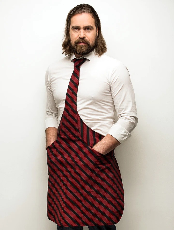 Made from durable woven fabric consisting of 66% cotton and 34% polyester. Cotton gives the fabric a fine texture and exceptional softness. Polyester provides added durability and shape retention. Similarly to a classic tie, the Tie-Apron is lined with an interlining fabric for a smooth and even surface.