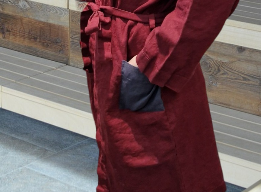 Linane hommikumantel on looduslikult hingavast materjalist.