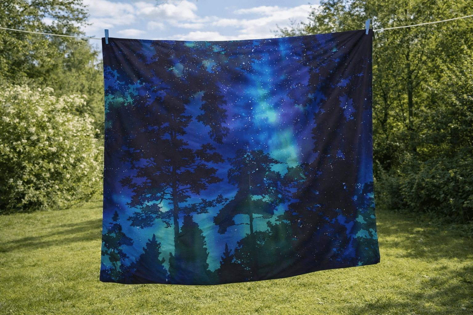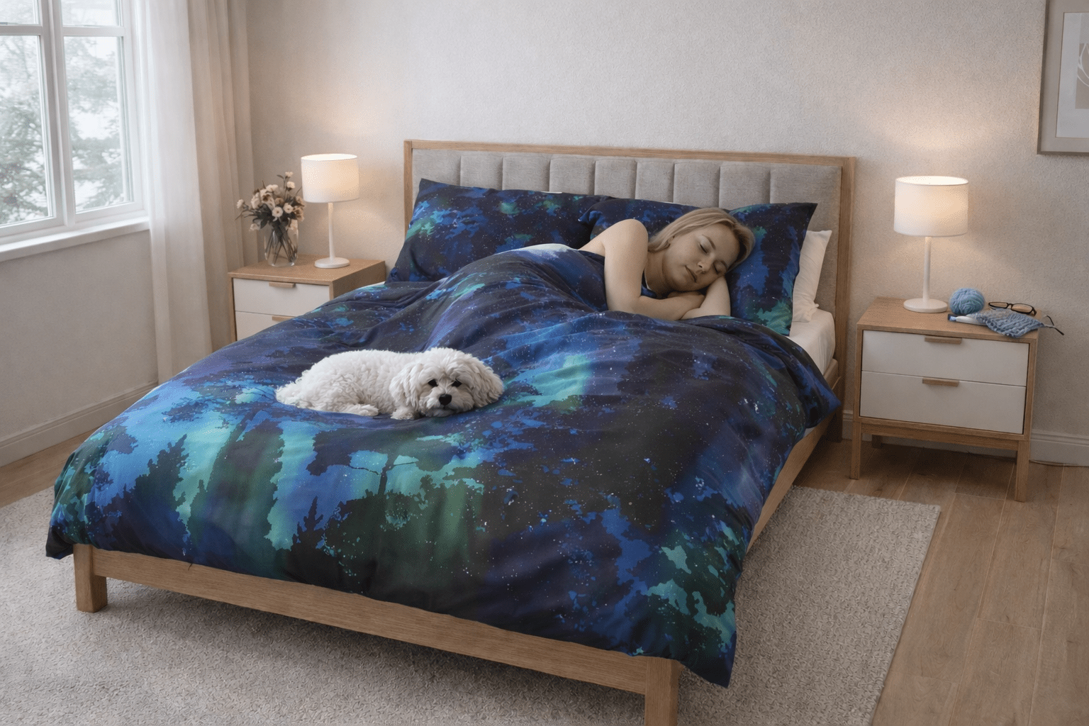 Suur voodipesukomplekt Virmalised on lummav valik neile, kes soovivad tuua magamistuppa põhjamaist müstikat, rahu ja luksuslikku mugavust.