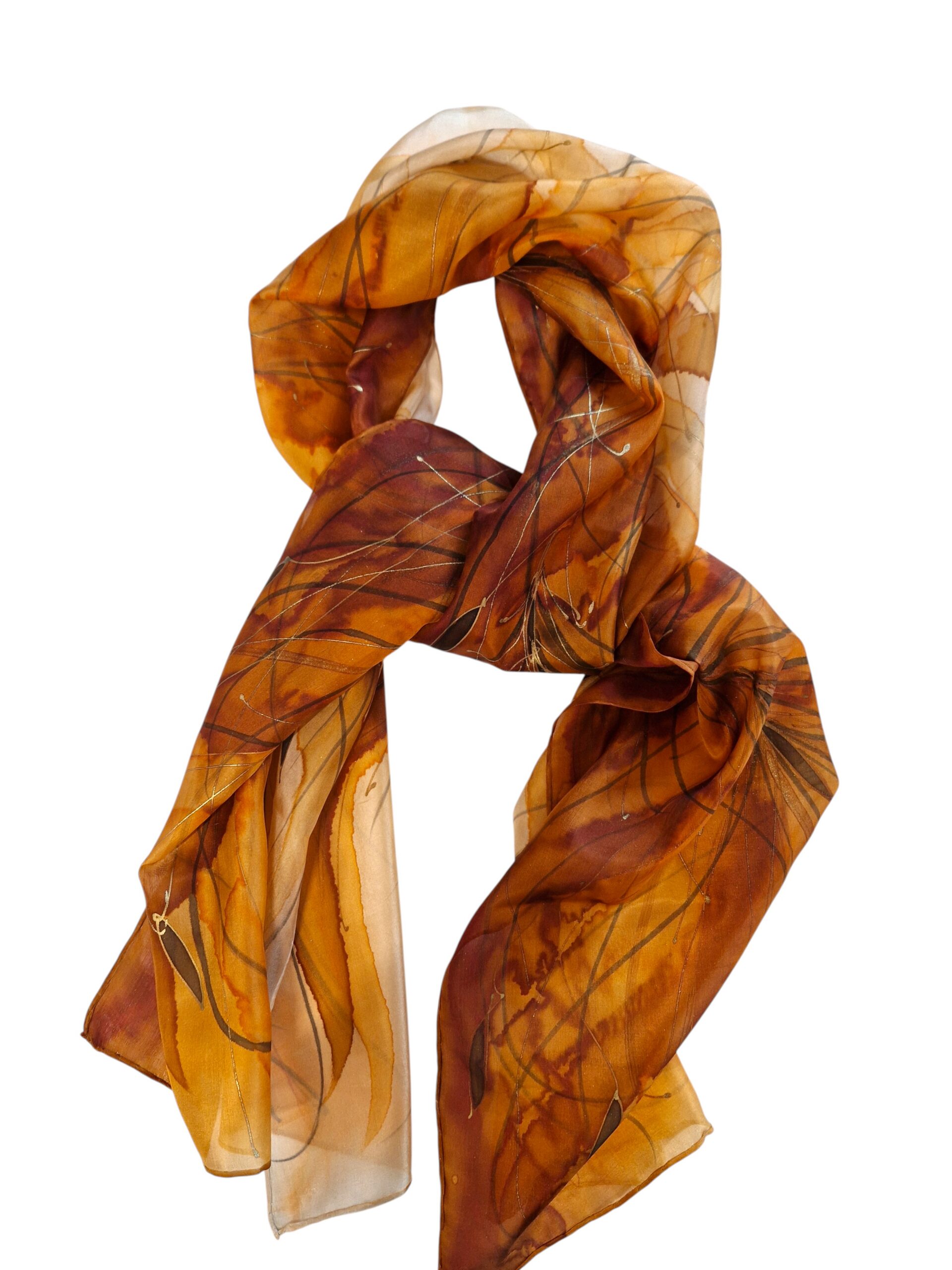 Siidist beež sall on elegantne ja ajatu aksessuaar, mille on käsitsi maalinud kunstnik Ilme Rätsep. Õrnalt langev naturaalne siid toob kaunilt esile sooja beeži, karamelli- ja merevaigutoonide varjundid, mis sulanduvad orgaaniliseks, loodusest inspireeritud mustriks. Voolavad jooned ja peened detailid loovad sallis kerge liikumise ja maalilise sügavuse, muutes iga eksemplari ainulaadseks kunstiteoseks.