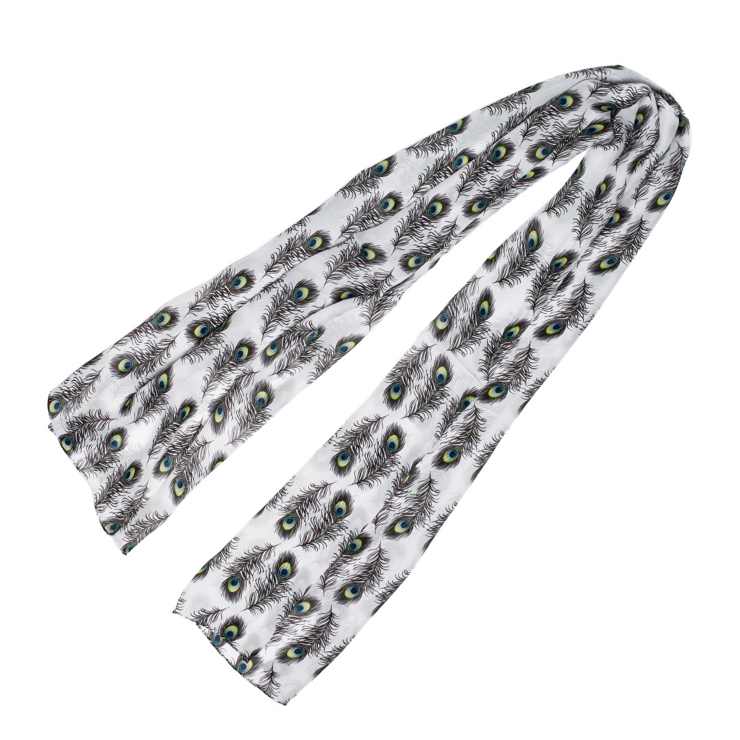 Õhukesest siidist kergelt läbipaistev hall sall paabulinnu sulgedega brändilt BSURD.