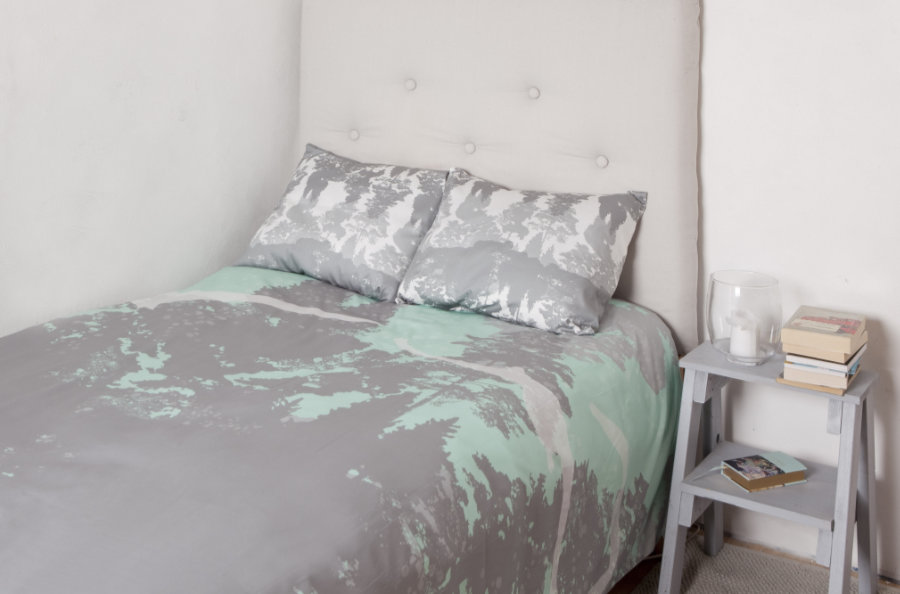 Tekikoti ühel poolel on suur pilt luikedest sinakal-hallil taustal. Tekikoti teisel poolel on põhjamaiselt hall metsamuster, sama mustriga on ka padjapüürid.