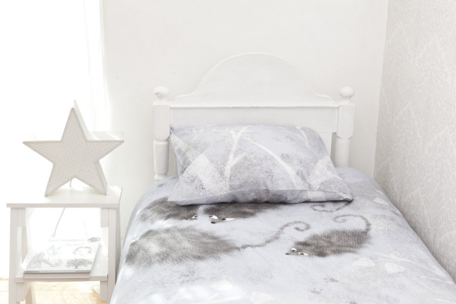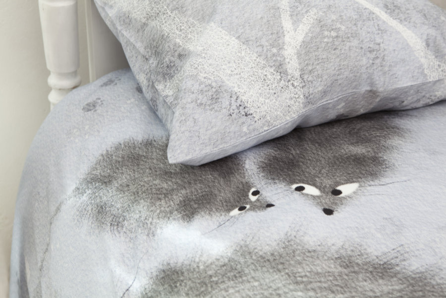 Voodipesukomplekt Hiired helesinises materjal: 100 % puuvillasatiin (satään)